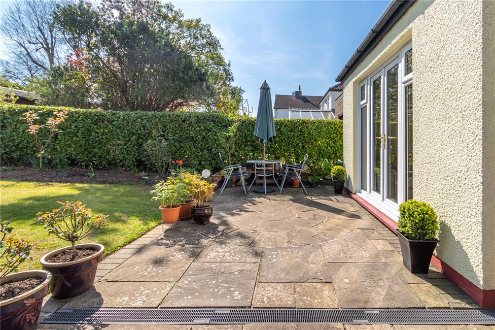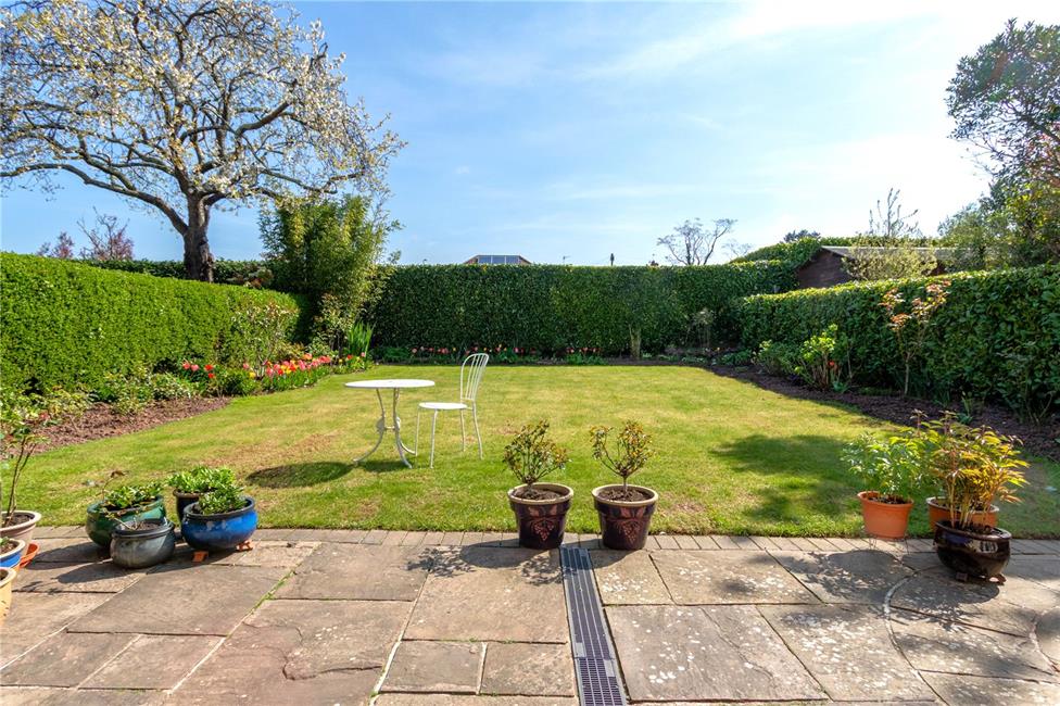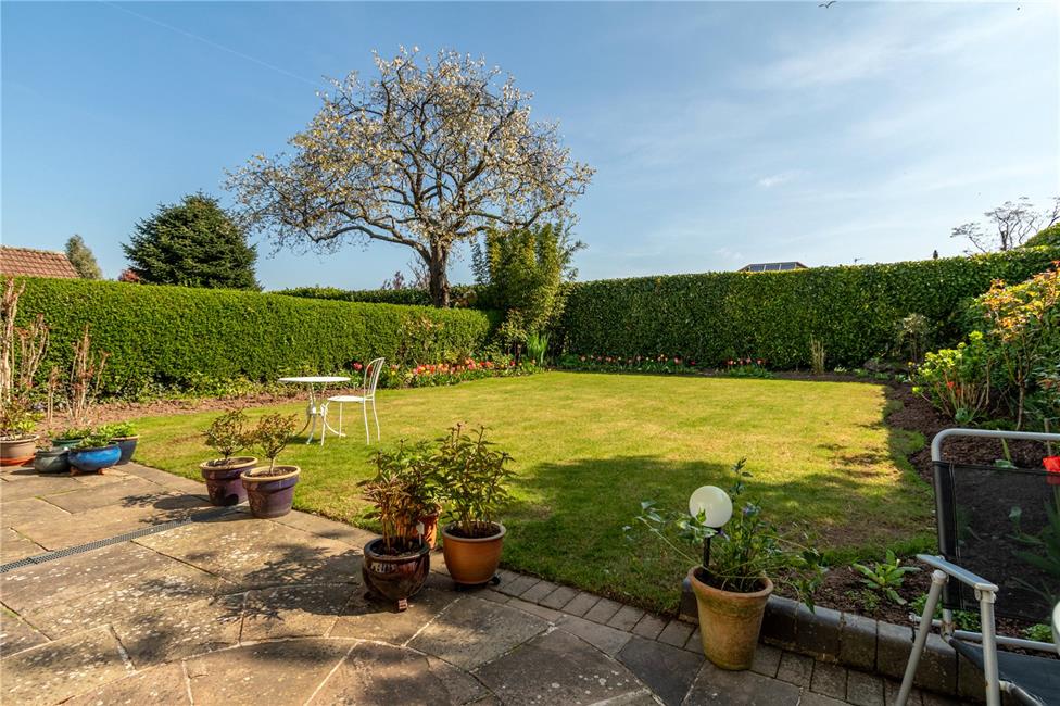 Access from both sides, an initial full width flagstone style paved patio leading onto a beautiful central lawn with a fine example of mixed colour plants, roses, flowers and shrubbery, backing onto bungalows giving it a private secluded feel, large timber garden shed, outside water tap.