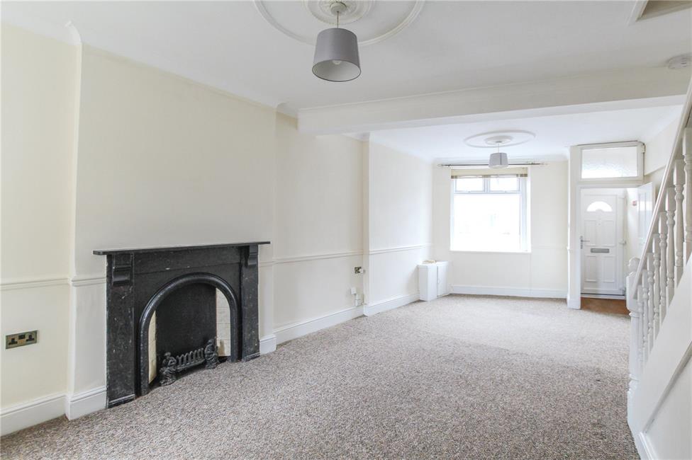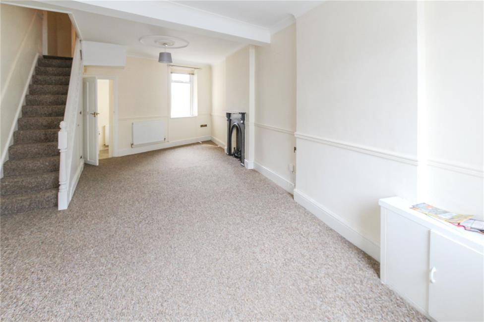 With dual aspects to front and rear, attractive fire surround (visual), two radiators, meter cupboard. Single flight staircase to first floor level with newel posts and banister, deep storage cupboard under stairs recess.