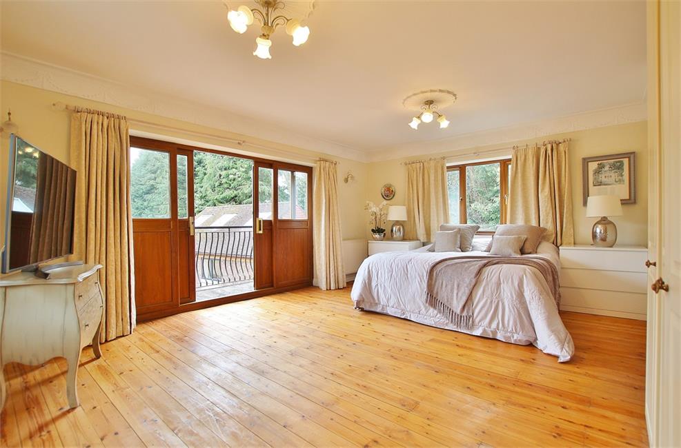 Overlooking the entrance approach with Juliet style sliding doors leading onto the front veranda, additional windows to side, range of fitted wardrobes , dressing room area (7' 2" x 6' 7" max), natural floor boarding, two radiators.