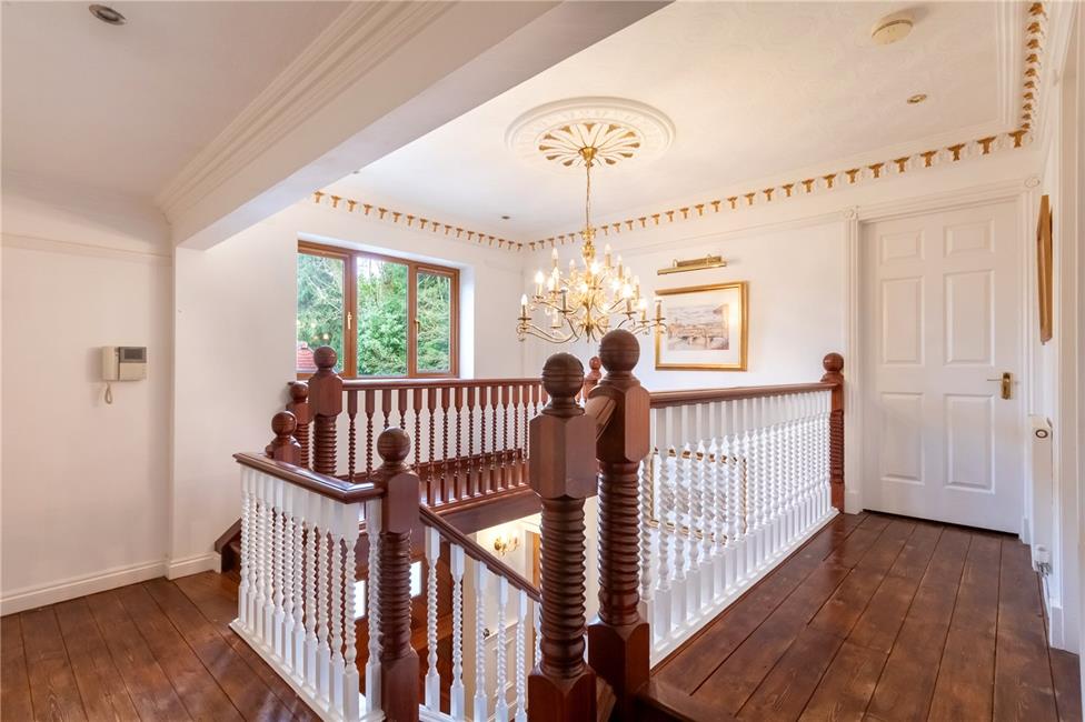 Approached via an easy rising staircase with rope spindles, leading to a galleried landing, tall cornice decorative ceiling, two radiators. Large walk-in airing cupboard housing hot water cylinder with shelving.