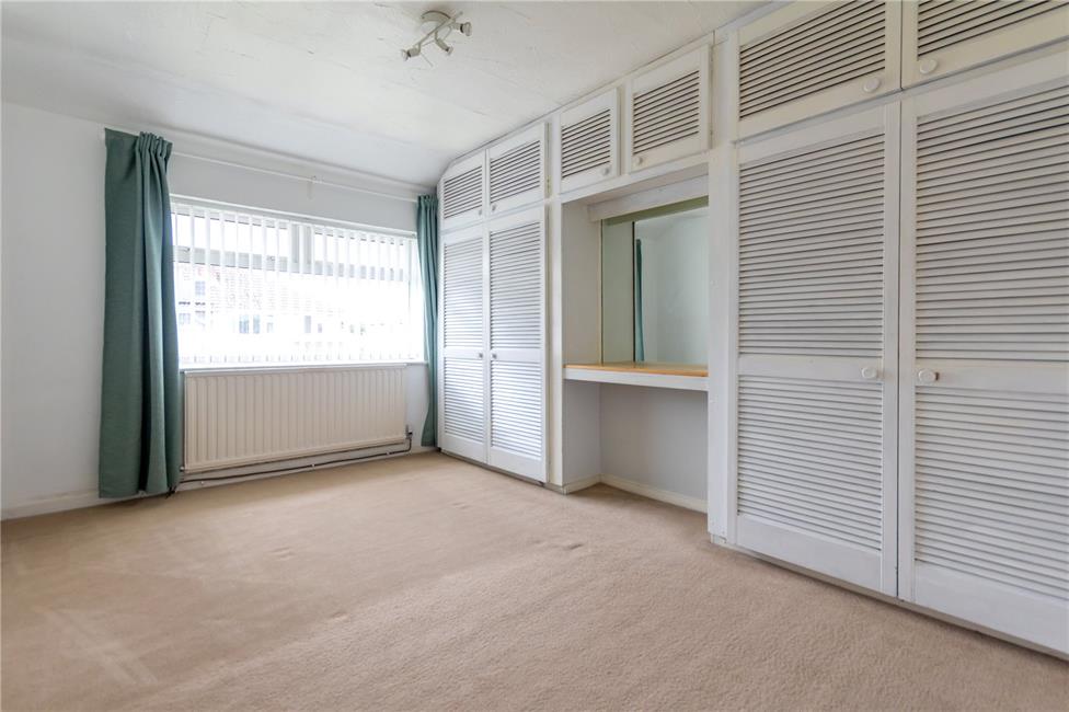 Overlooking the rear garden, radiator, built-in wardrobes comprising of one double and one single with overhead storage, hanging space and shelving.