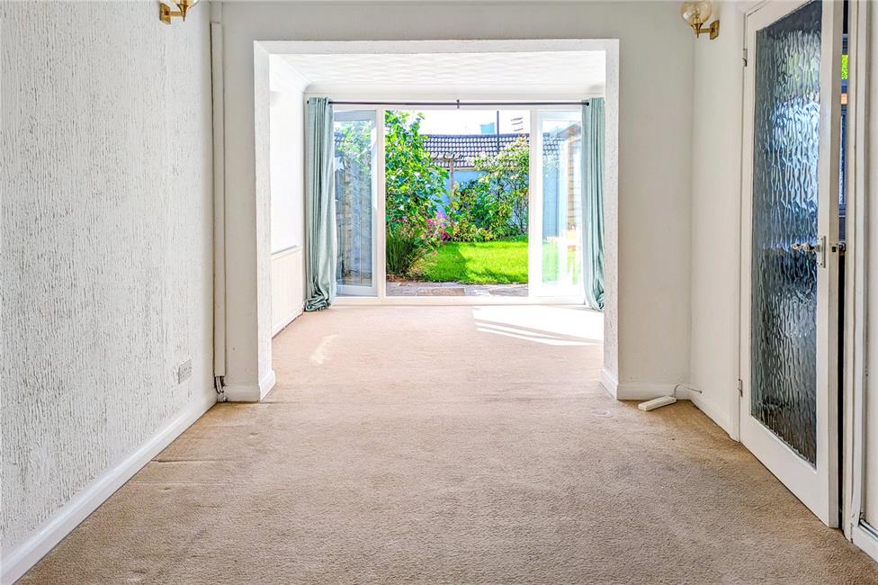 uPVC double glazed full height window and French doors onto the enclosed rear garden, radiator.