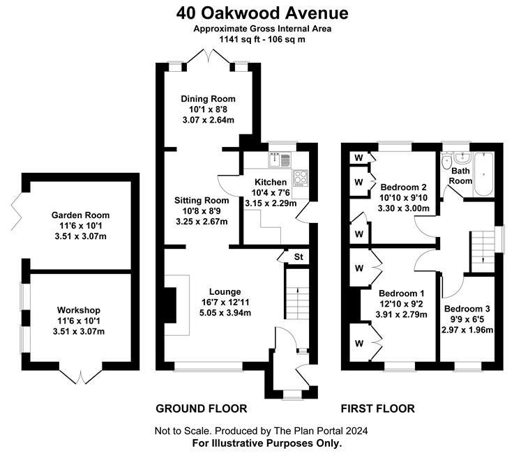 Bedroom 1 12'10" (3.91m) x 9'2" (2.79m) overall