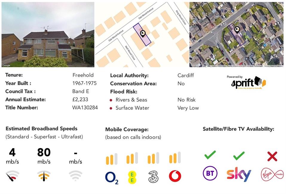 Travelling south along Cyncoed Road towards the end of Cyncoed Road turn left at the traffic lights into Llanedeyrn Road. After passing the school on the left hand side take the next right into Llanedeyrn slip road, followed by the next right into Oakwood Avenue, and the subject property can be found a short distance on the right hand side.