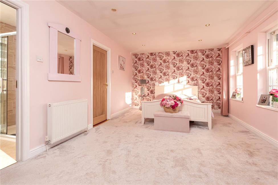 Overlooking the front courtyard, ceiling spotlighting, radiator. Walk-in dressing room with rails, radiator, window to side.