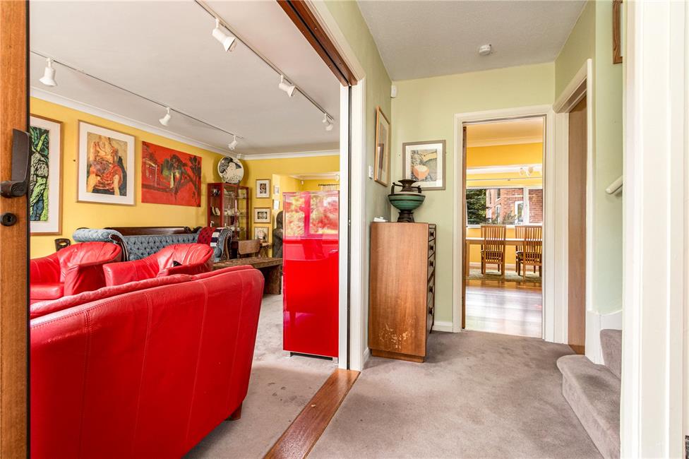Approached via an opaque glazed uPVC door, leading onto a central hallway, full turning staircase to first floor landing, contemporary upright radiator, glazed concertina folding doors to the lounge.