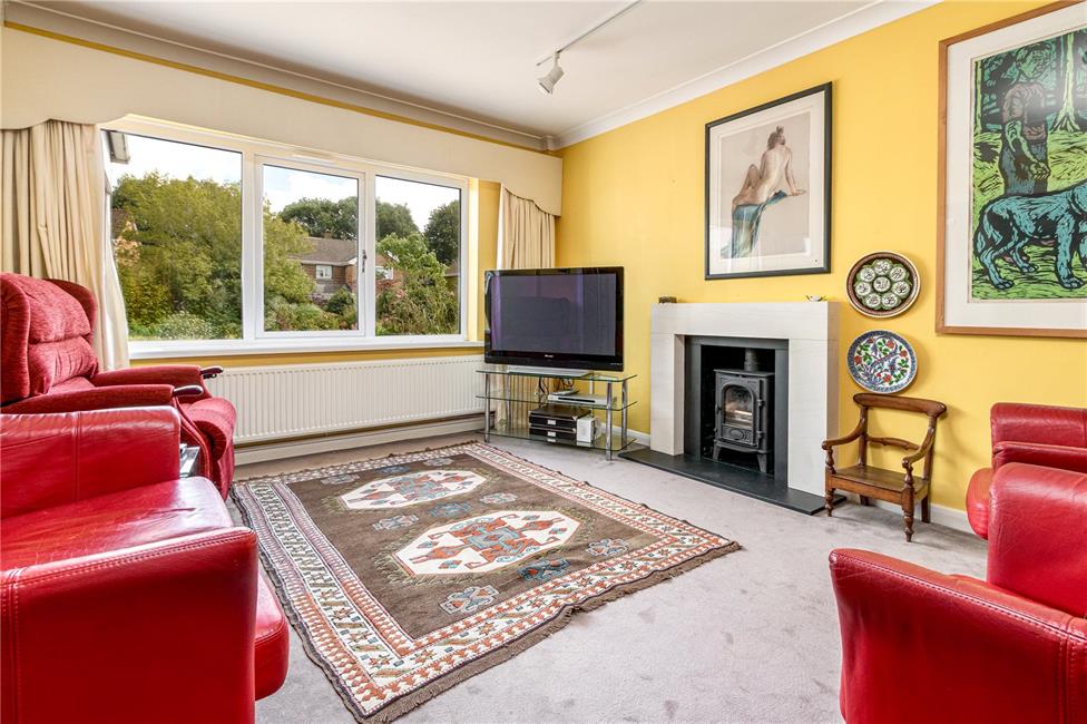 Window overlooking the large frontage, a generous size principal reception room, contemporary fire surround with matching back and hearth and a wood burning stove, coved ceilings, radiator, large opening to .