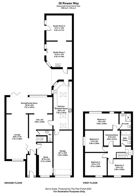 Entrance porch, hallway, cloakroom/WC, 24ft lounge with wood burning stove, 24ft L-shaped dining/family room with bi-folding doors, 25ft kitchen/breakfast room, study, four genuine double bedrooms, dressing room and en suite shower room to bedroom 1, plus a family bathroom with shower.