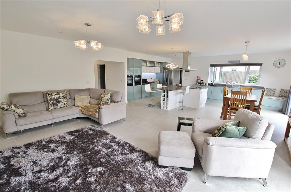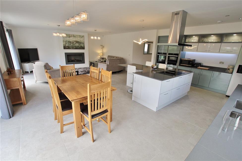 Large reception hall with lobby, superb 32ft fitted kitchen/family room with bi-folding doors, quartz granite worktops, feature central island, integrated appliances, laundry room, 2 ground floor bedrooms, en suite to principal, quality family bathroom, 3 further first floor bedrooms, 2 additional en suites. High standard of finishes throughout including under floor heating (ground floor), double glazed windows and doors, LED lighting.