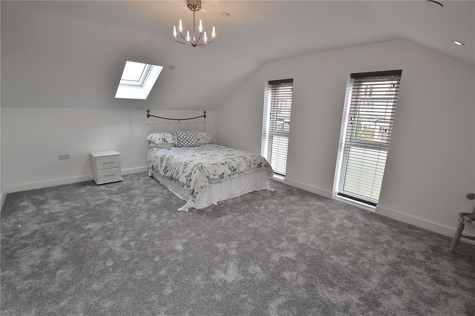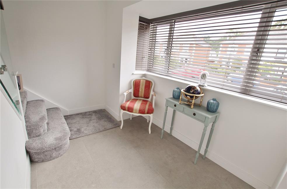 Approached by an easy rising staircase with glass panelling and stainless steel hand rails, leading onto a large central landing area, window to front, ample space for desk and study area, radiator, large walk-in store at eaves level.