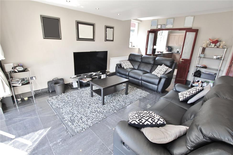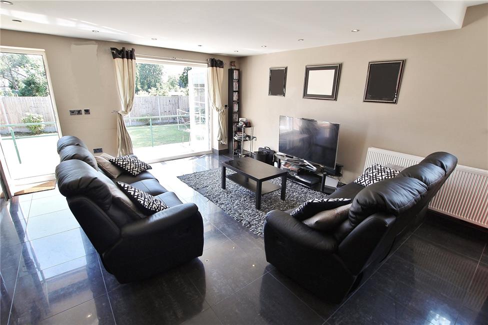 Of excellent proportions with double glazed patio doors overlooking the rear garden with additional double glazed French door to side, quality tiled flooring with matching skirting boards, radiator, ceiling spotlighting, concertina folding doors leading to kitchen.