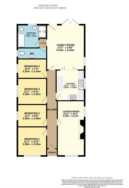 Deep central hall, 17ft family room with patio doors, spacious fitted kitchen, 20ft lounge/diner, 4 good sized bedrooms, and modern family bathroom with separate cloakroom. uPVC double glazing, gas central heating.