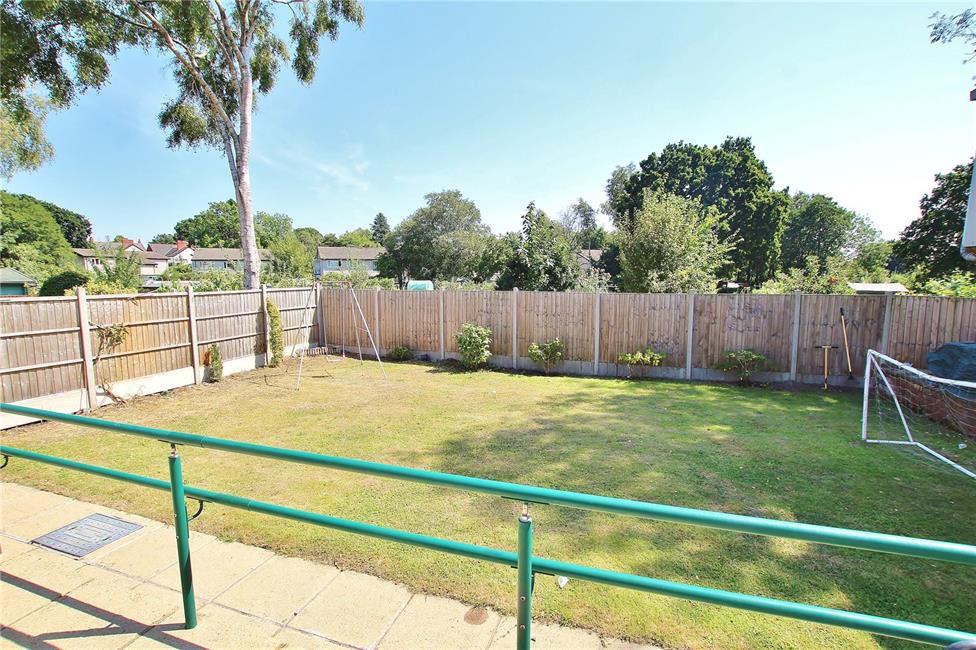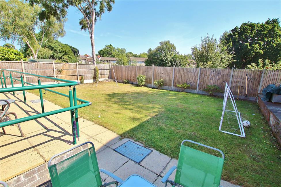 Attractive and sunny south facing rear garden with wide patio doors backing onto allotments, enjoying an open aspect. Attractive front garden with shaped hedges, long concrete driveway to side with gates.