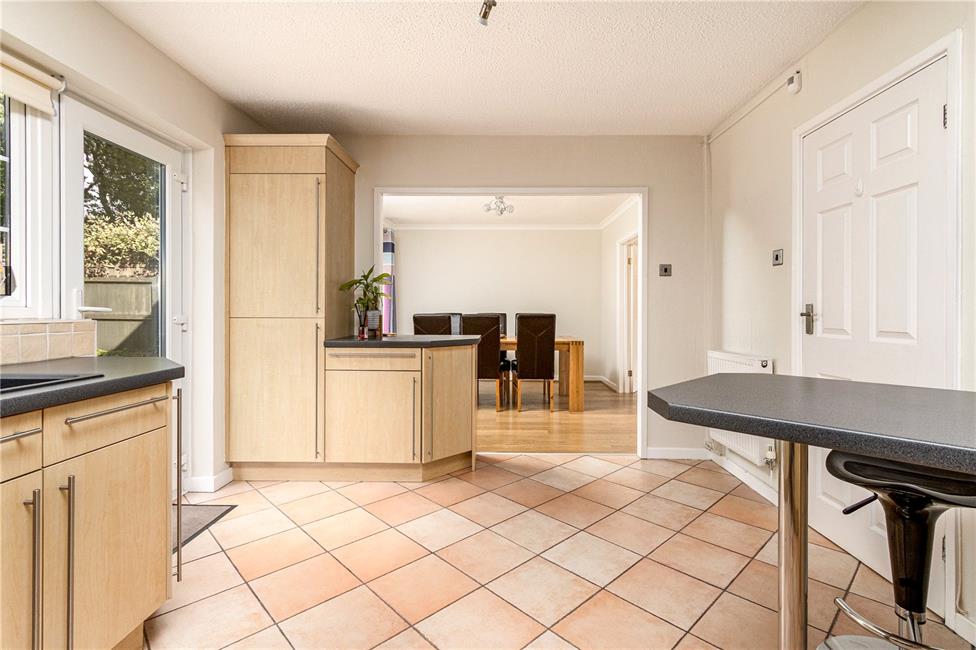 Sliding patio doors onto the rear garden, ample space for large family dining table, coved ceiling, wood grain effect laminate flooring, radiator, large square opening to the kitchen.