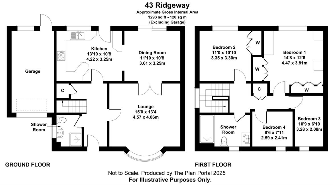Attached garage with up-and-over access door, window and door to the rear of the garage, with access to the rear garden.