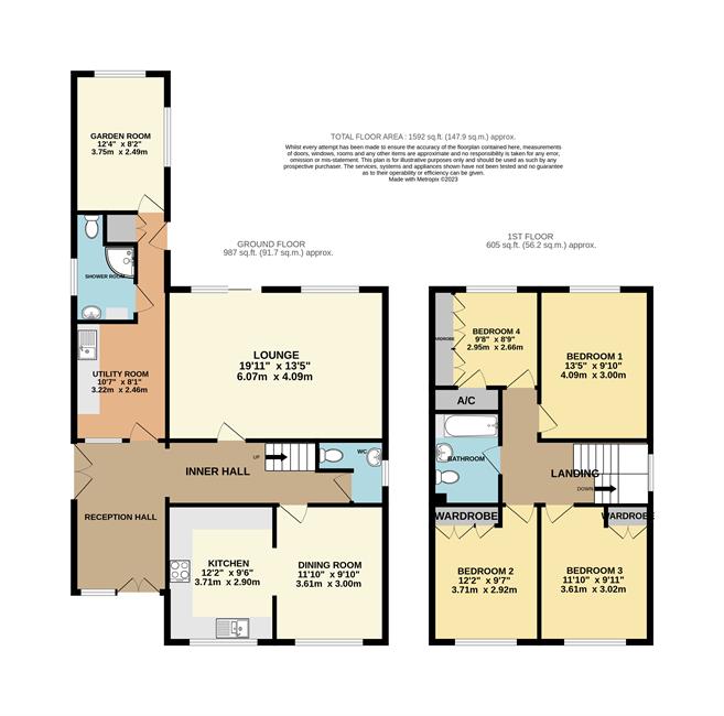 Bedroom 1 13'5" (4.09m) x 9'10" (3m)