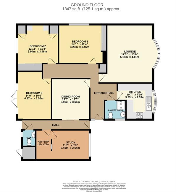 Entrance hallway, large lounge, dining room, kitchen with fitted oven/hob/hood, 3 large double bedrooms, shower room, inner walkway, separate cloakroom/WC, laundry room and study. uPVC double glazed windows and doors, gas central heating and built-in wardrobes.