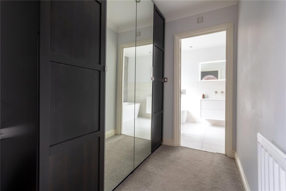 Overlooking the entrance approach, double panelled radiator, archway into dressing room area.