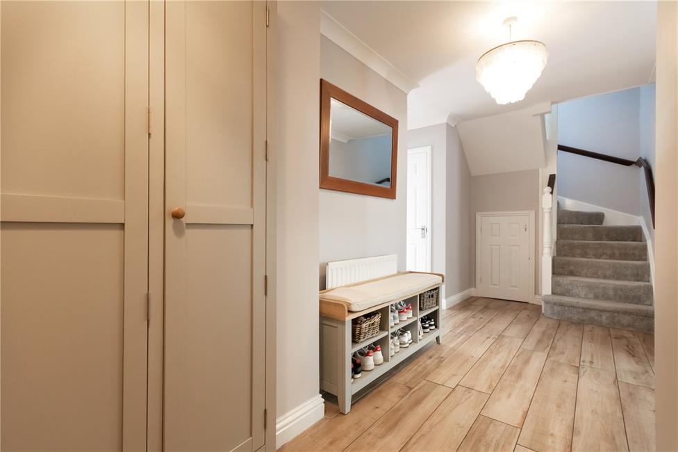 Approached by a secure composite panelled front door with magic eye view finder, leading onto a wide central hallway with staircase to first floor level, quality tiled flooring, panelled radiator, deep storage cupboard under stairs recess.