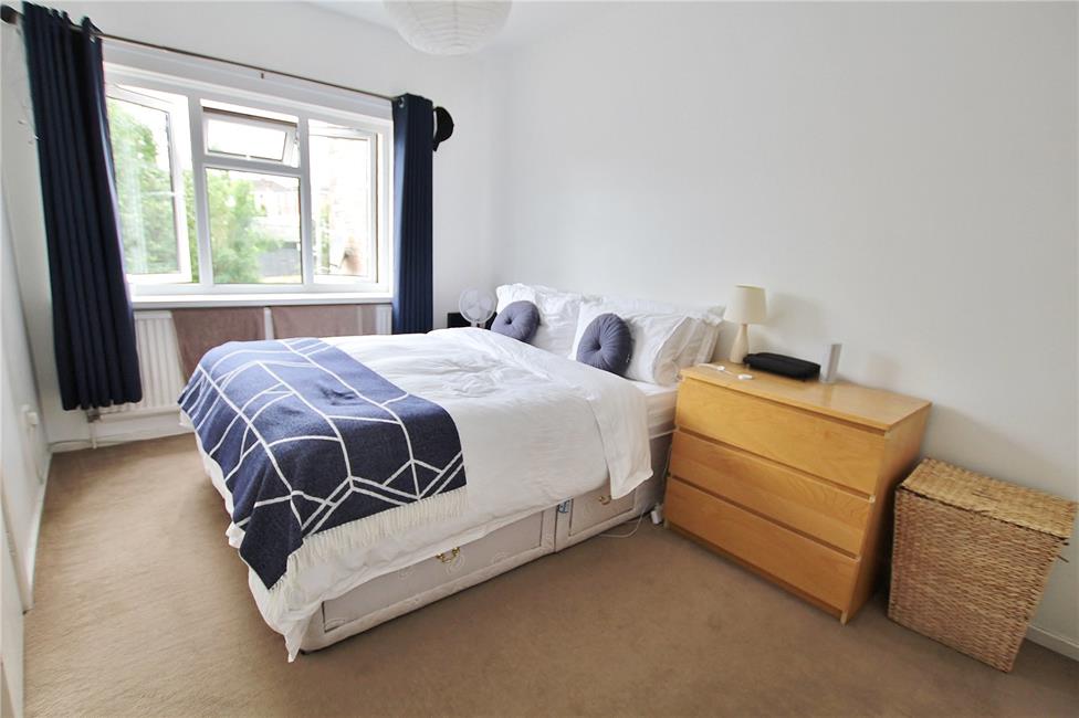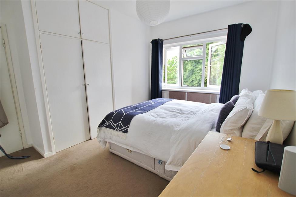 A generous second bedroom overlooking the front, radiator, built-in double wardrobe with hanging rail and overhead storage.