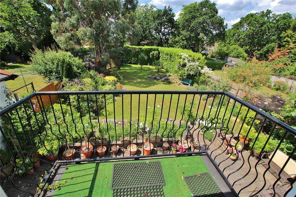 Double glazed French doors and side screens leading onto a delightful balcony overlooking the rear gardens, radiator.