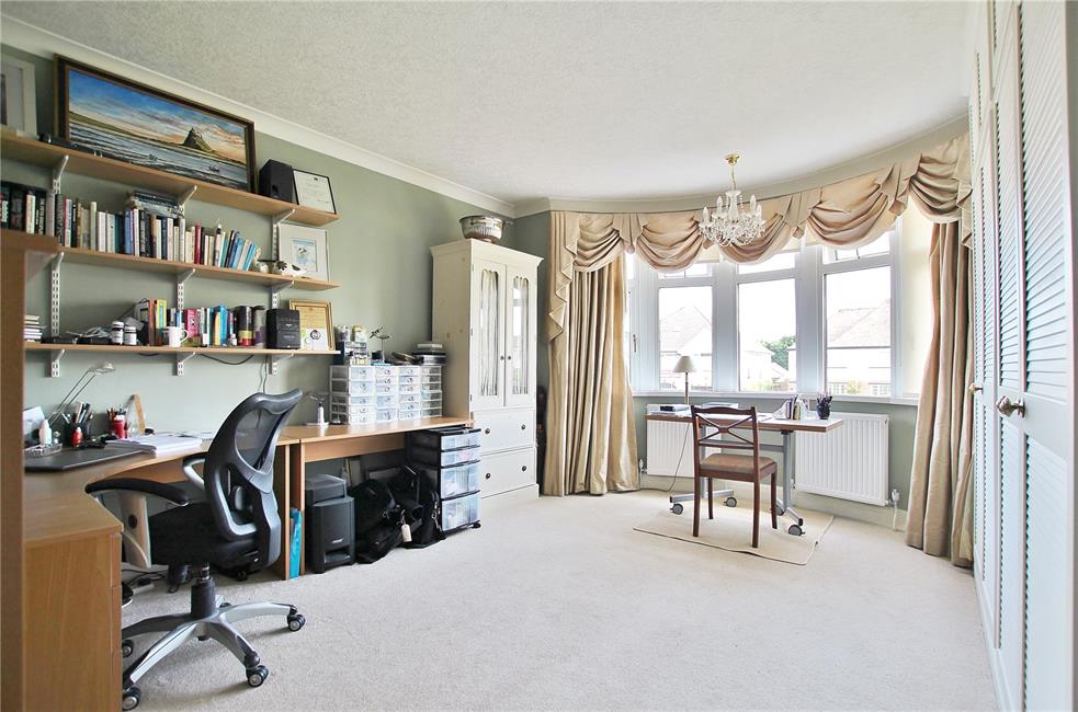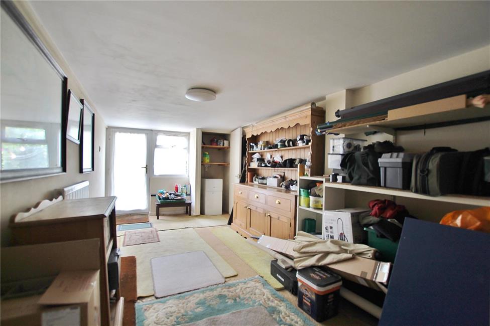 Ideal working from home, panelled radiator, double glazed door and window to rear garden. Built-out cupboard housing Worcester gas central heating boiler with shelving above.