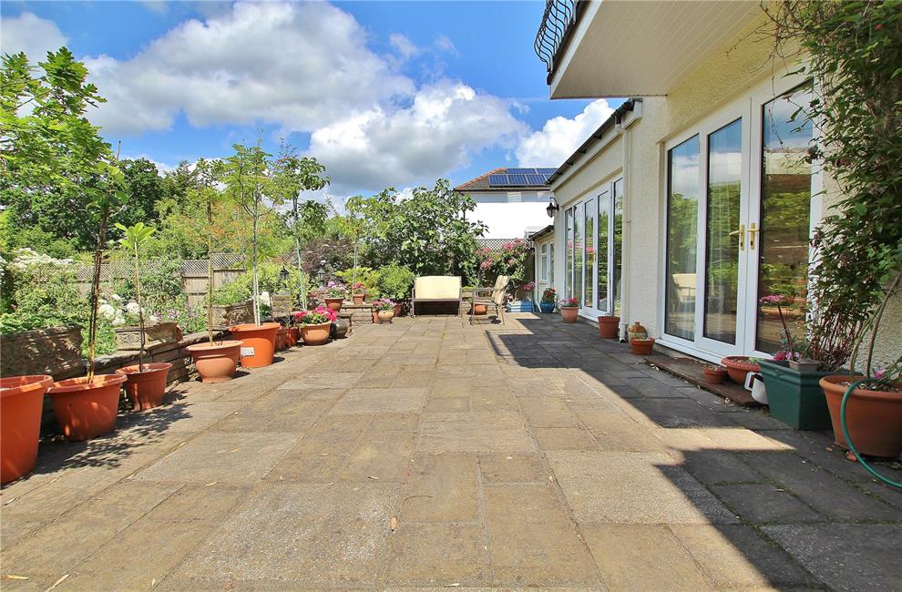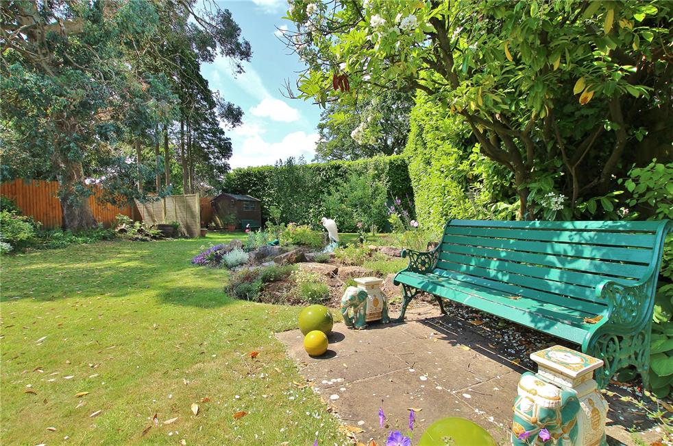 Set in grounds of just under quarter of an acre (0.21 Acres), beautifully maintained and stocked 110 ft sunny south west facing garden, enjoying an open aspect, wide patio area leading onto an area of shaped lawn, well stocked with flowering plants and evergreen shrubs, with decorative raised stone flowerbeds, with stone and plant rockery section enclosed by timber lapped fencing and shaped laurel hedges. Feature Eucalyptus tree. Fruit bearing trees at the far end, timber store. Gate leading to front garden.