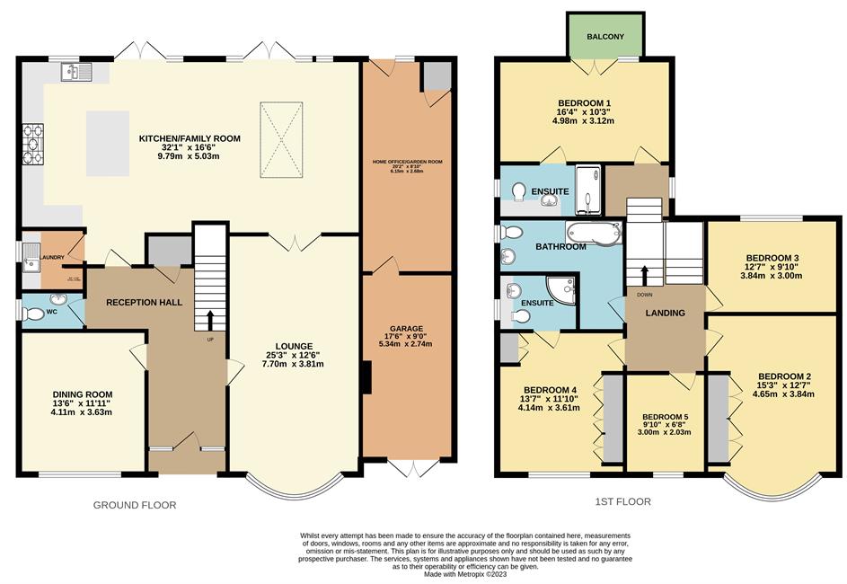 Central reception hall, woodblock floors, cloakroom, 25ft bay fronted lounge, bay fronted dining room, superb 32ft fitted kitchen/family room, integrated appliances, granite central island, laundry room, 5 bedrooms, principal with balcony and en suite, guest en suite plus modern family bathroom. High standard of finishes throughout. Fitted wardrobes, gas central heating, double glazing.