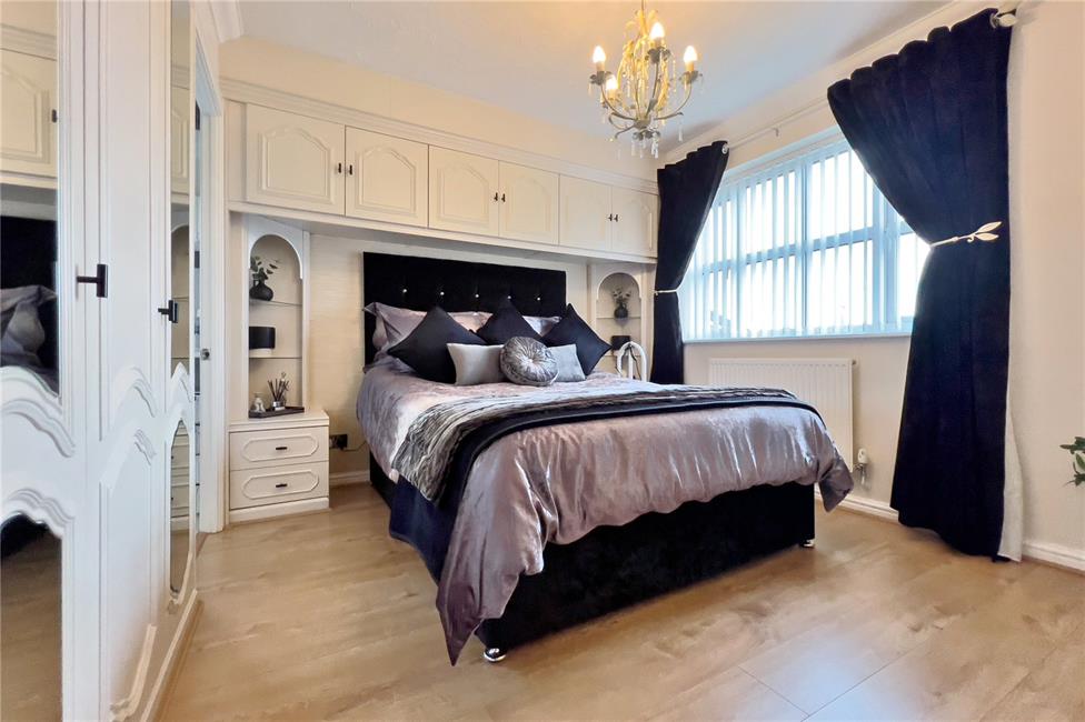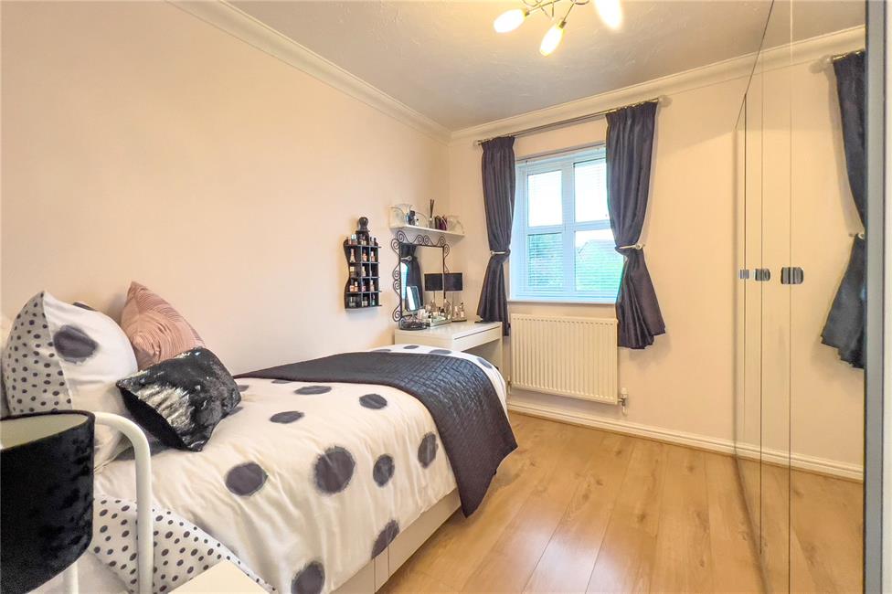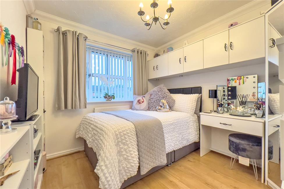 Overlooking the rear garden, laminate flooring, radiator, built-in wardrobes comprising of one double and two singles with full height mirrored doors, aerial point, thermostatic radiator valve.