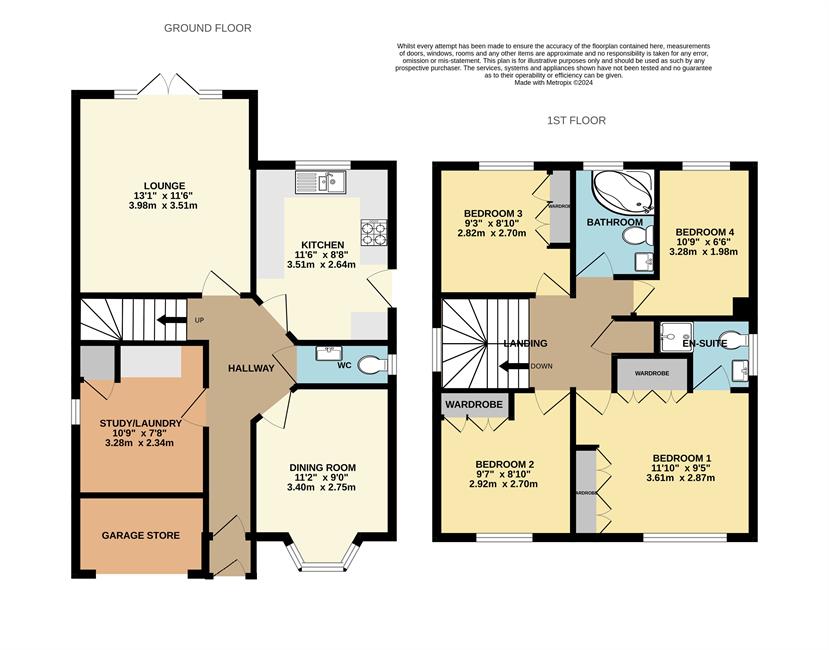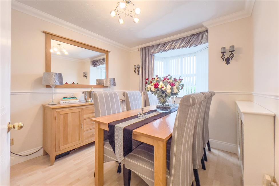 Entrance porch, entrance hallway, cloakroom/WC, lounge with French doors to the rear garden, bay fronted dining room, study/laundry room, fitted kitchen with oven, hood and dishwasher, 4 bedrooms, en suite shower room and a family bathroom.