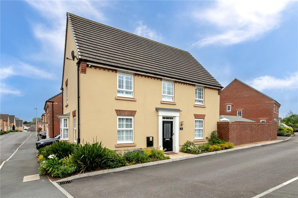 A recently built David Wilson home whereby construction was completed in 2018 and still retains the builder's 10 year NHBC warrantee, positioned on a corner, on a convenient relatively small development within a 2 minute walk of Blooms Garden Centre and easy vehicle links to the M4 and A48. Entrance hallway, beautifully appointed bay-fronted lounge, superb kitchen/diner with 6-burner hob, double oven, extractor, integrated dishwasher, fridge and freezer, with breakfast bar, utility room, 4 bedrooms, principal en-suite and a family bathroom. Upvc double glazed windows, quality composite front and rear doors, gas central heating, built-in storage and surrounding cctc coverage. Outside is open-plan to the front, 2-car driveway to a converted garage and an enclosed completely refurbished garden. EPC Rating: B