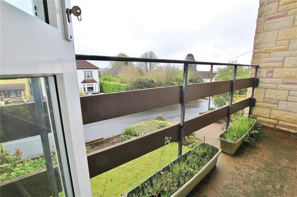 Large window and double glazed doors overlooking the north Cardiff hills and giving access to the front balcony with timber balustrade and overlooking the front garden, panelled radiator, telephone point, door to . . .