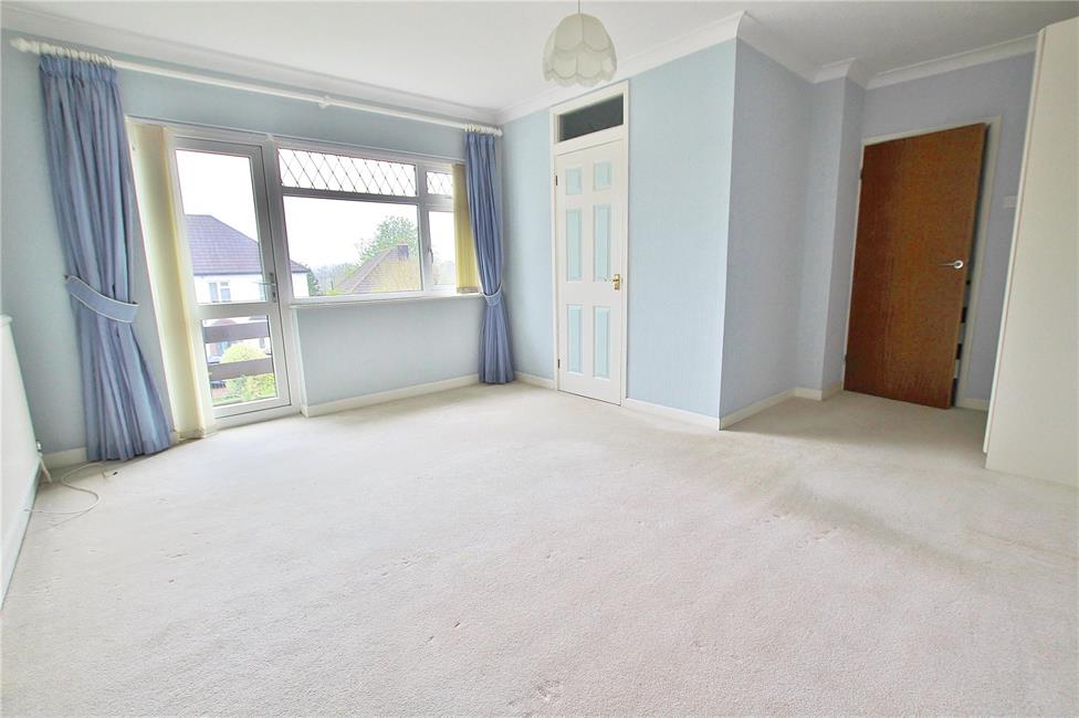 A good size third bedroom overlooking the front garden and north Cardiff hills to the distance, radiator, built-in cupboard with shelving.
