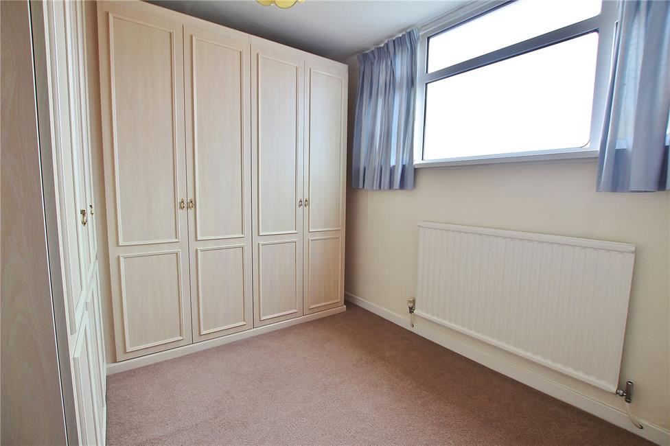 A generous fourth bedroom, window to side, radiator, fitted bedroom furniture comprising of double wardrobes with hanging rails and shelving.