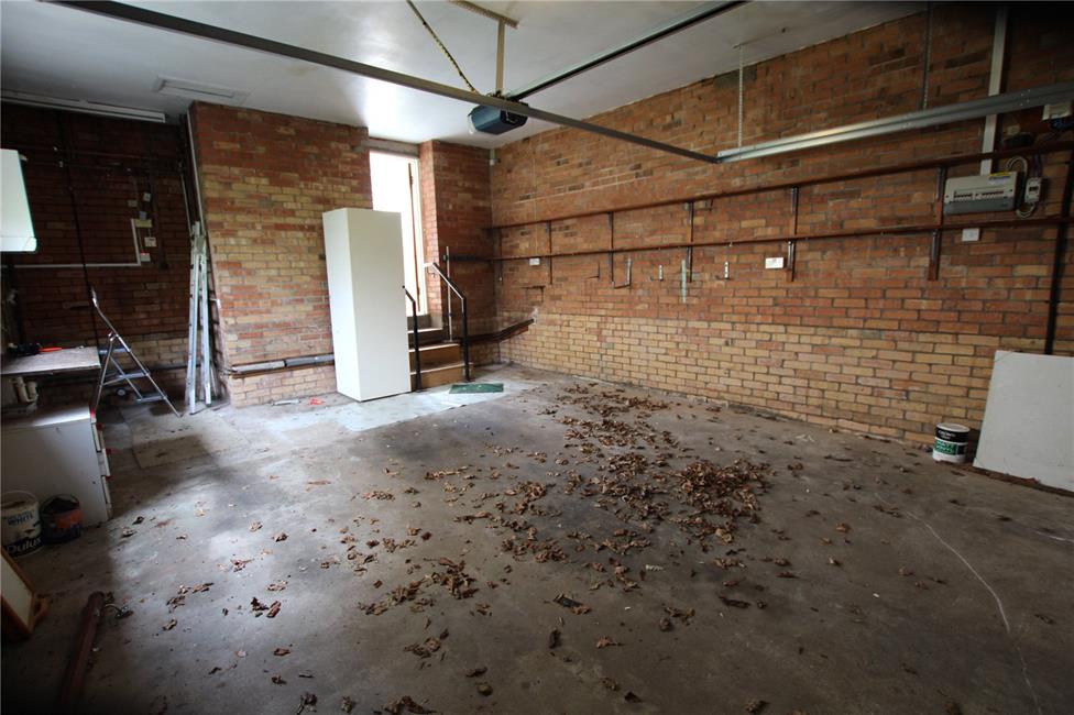 uPVC double glazed door and window giving access to the rear garden, continuation of the cushion flooring, integral door to a large double garage, further internal door leading to cloakroom/WC.