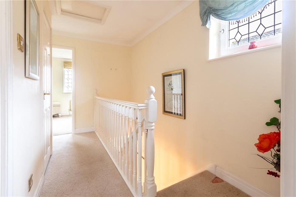 Approached by an easy rising single flight staircase with newel post and spindle banister, leading onto a central landing area, double glazed window to side, access to loft, built-in airing cupboard housing factory lagged hot water cylinder with shelving.