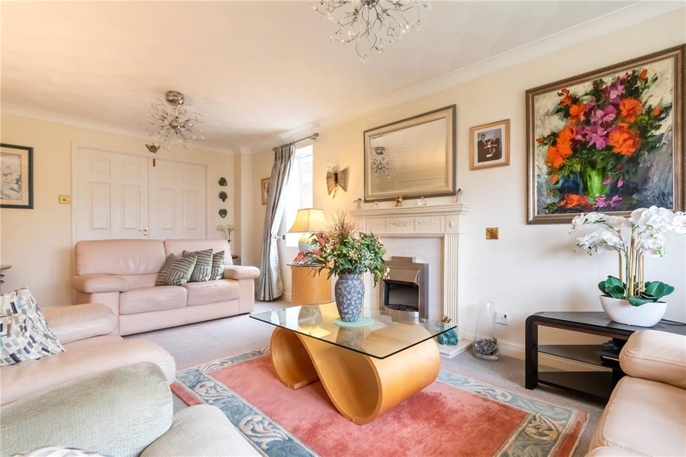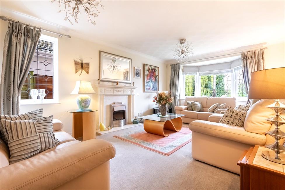 Overlooking the entrance approach and enjoying an open aspect, feature marble fireplace and hearth with ornate decorative fire surround with mantel, double panelled radiator, twin doors opening to dining room.