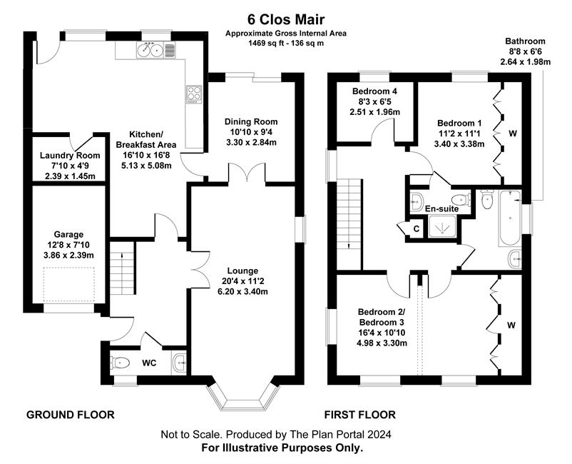 Bedroom 1 11'2" (3.4m) x 11'1" (3.38m) excluding fitted wardrobes