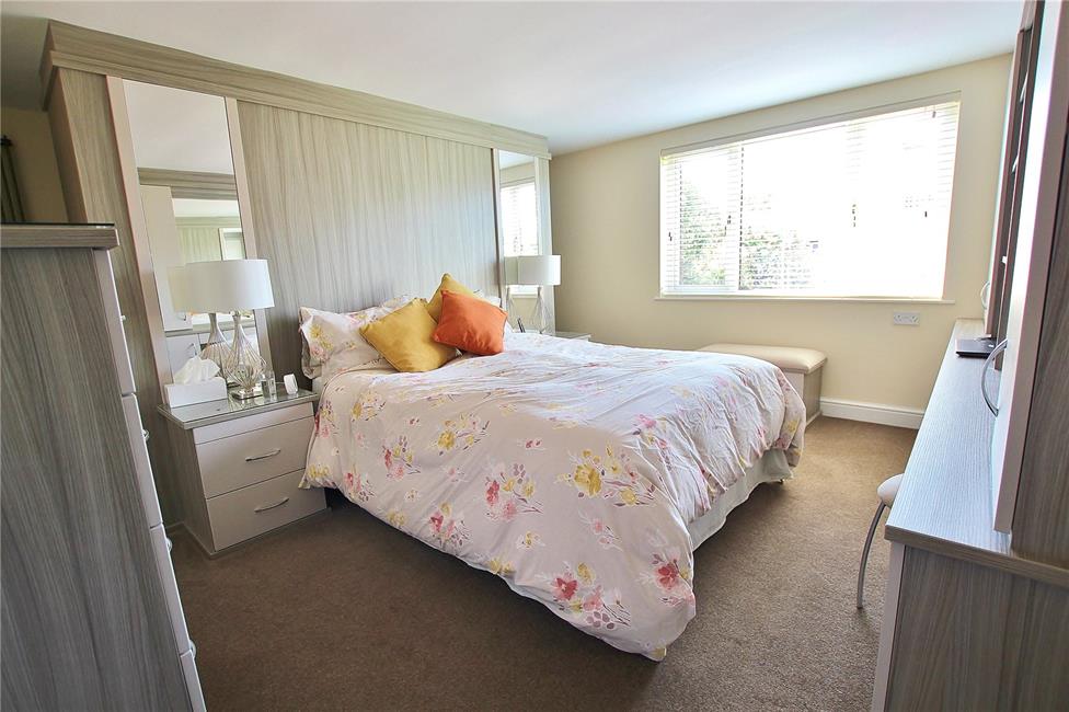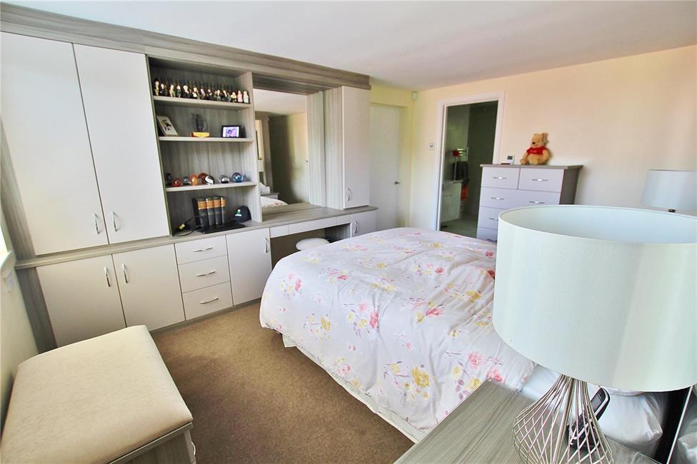 Overlooking the front, a stylish room with a fitted dresser unit with shelving and an abundance of cupboard space, stylish, hidden fitted wardrobes with wrap-around walk way, two vertical radiators door to