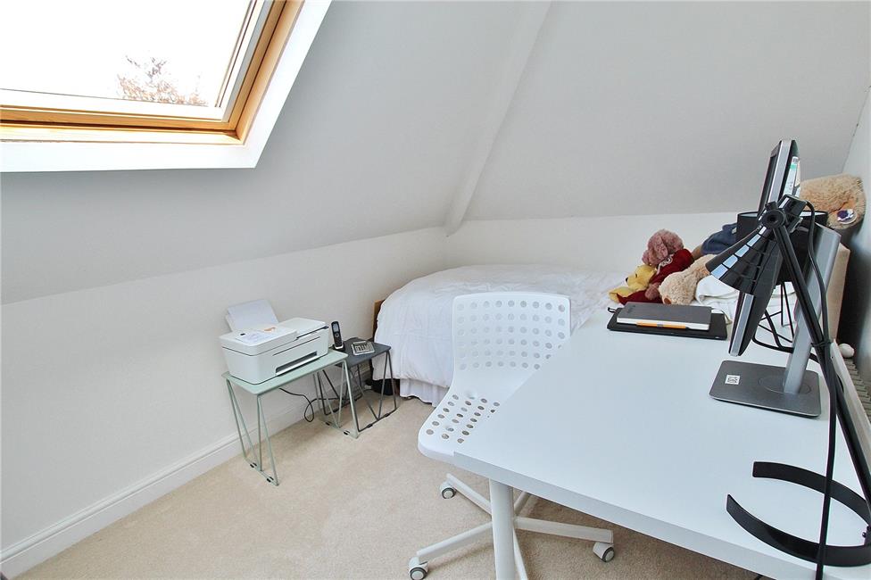 Double glazed Velux roof window to the side, stylish built-in wardrobe fitted into the angled sloping ceiling, radiator. Hatch to eaves space.