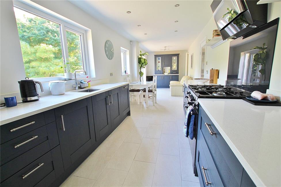 Entrance porch, long entrance hallway, lounge with log burner, dining room, snug room, 29ft kitchen/family room, utility room, cloakroom/WC, five bedrooms and four bathrooms. UPVC double glazing, gas central heating, fitted wardrobes, kitchen appliances include range style cooker, dishwasher, wine chiller, two fridges and two freezers.