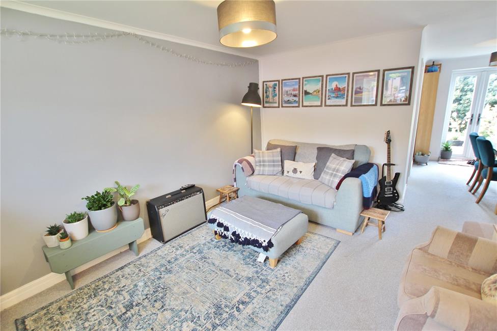 With double glazed French doors leading to the sunny south-west facing garden, ample space for dining table, panelled radiator, deep storage cupboard under stairs recess.