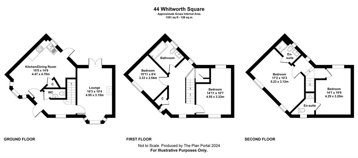 Bedroom 1 17'2" (5.23m) into angel x 10'3" (3.12m) overall