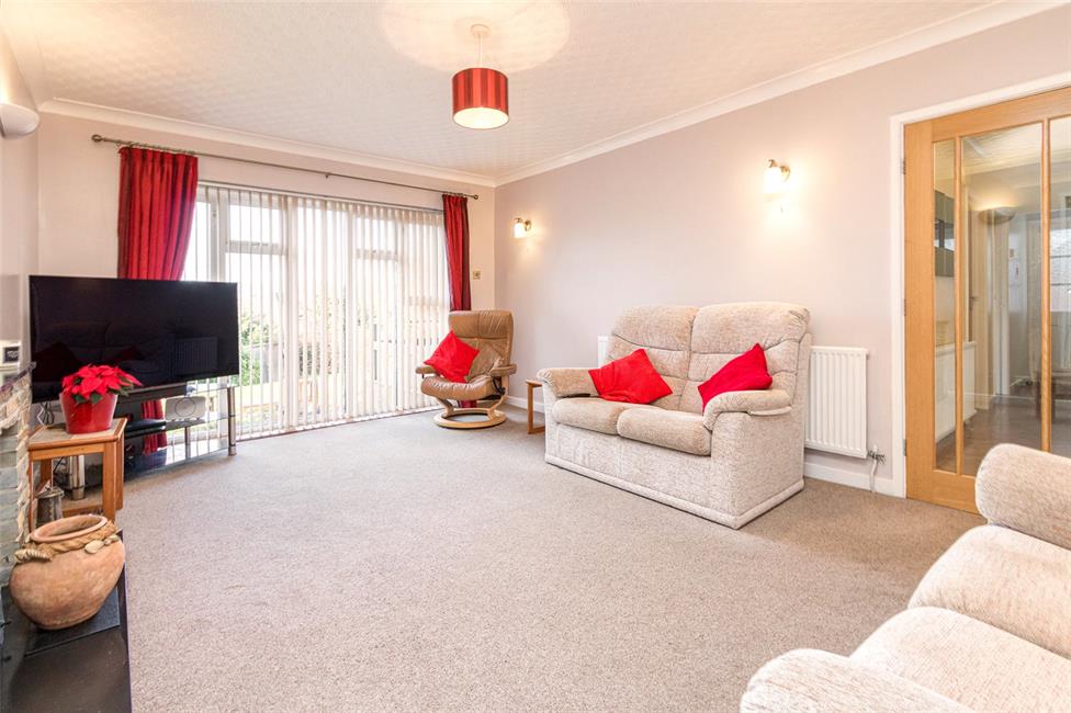 Full height windows and door giving access to the rear raised decking area and large garden beyond, double radiator, quality floor tiling, arch opening into the kitchen/breakfast room.