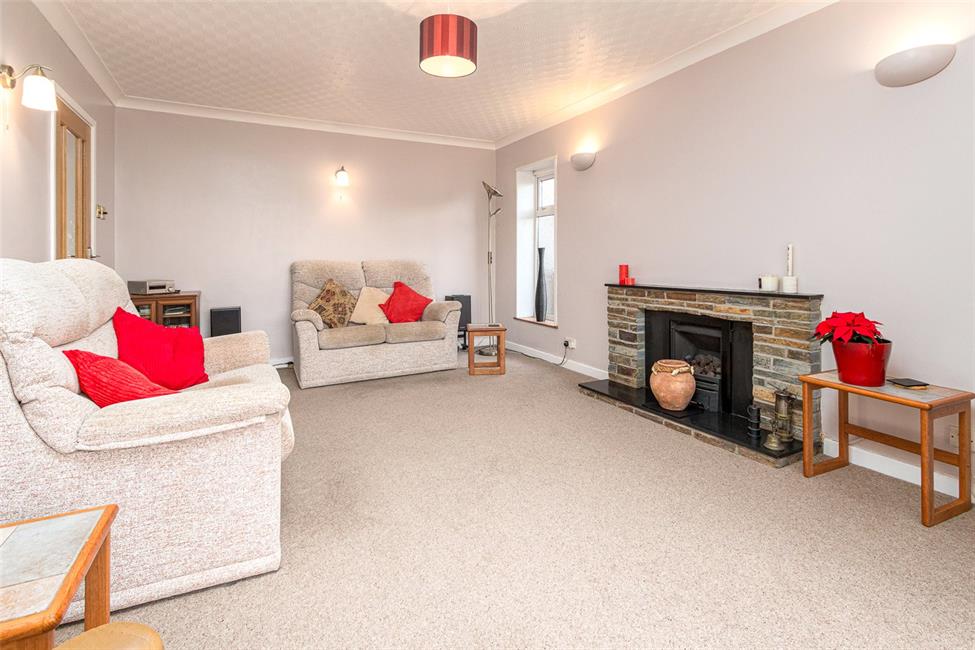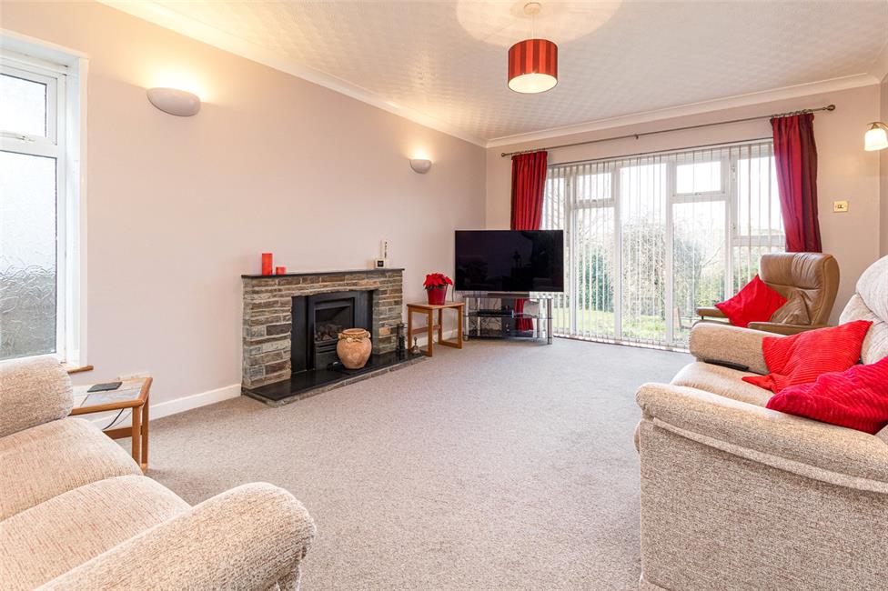 Opaque window to side with a further full width picture window overlooking the larger than average rear garden with distant views of the north Cardiff hills, a stone fire surround with coal effect gas fire on a black slate hearth (not tested), panelled radiator, main Broadband point.