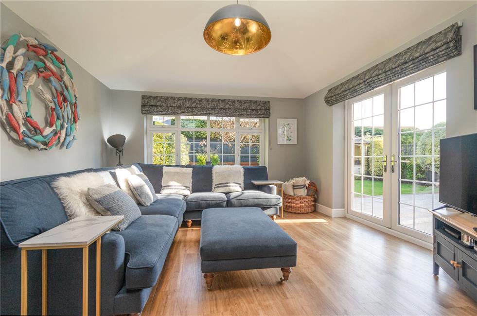 Aspect to the garden overlooking the enclosed and beautifully presented rear garden, uPVC double glazed French doors giving access to the rear patio and garden, continuation of the quality oak effect flooring, high level skirting boards, double radiator, multiple TV and sat points.