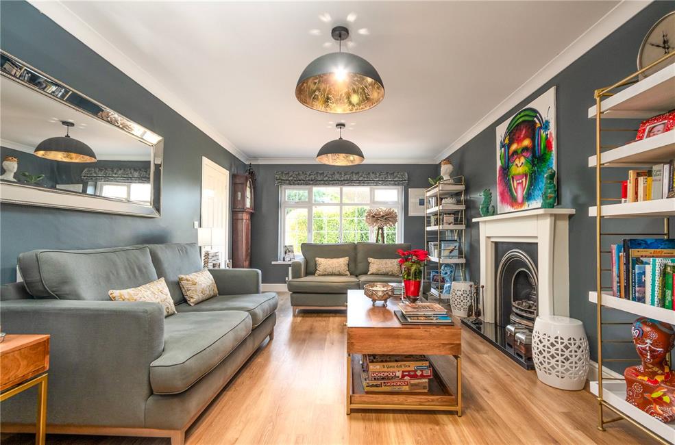 Overlooking the driveway, two radiators, continuation of the quality vinyl flooring, traditional high level skirting boards, feature fireplace with a timber surround and coal effect gas fire on a black marble hearth, double doors to the dining room, aerial, satellite and telephone points, double doors into the dining room.