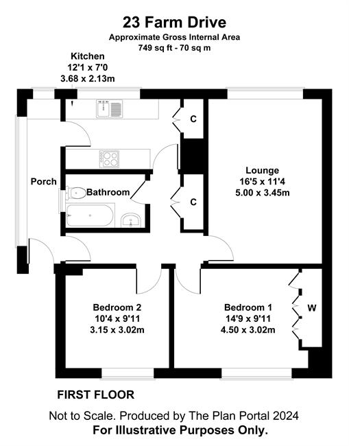 Bedroom 2 10'4" (3.15m) x 9'11" (3.02m)