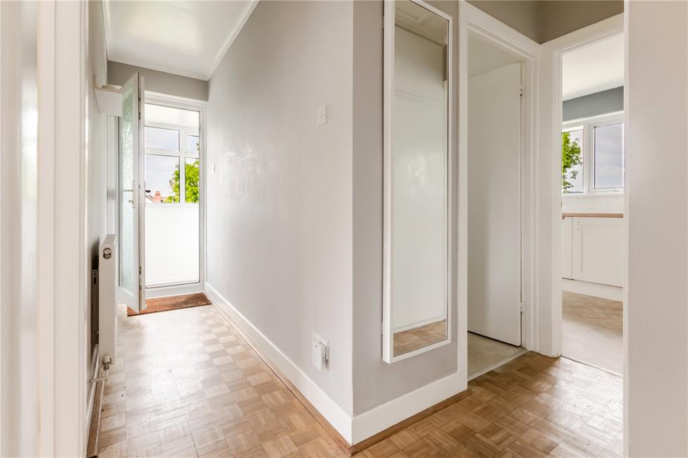 Approached by a uPVC glazed door, original parquet flooring, radiator, access to loft, built-in storage cupboard with hanging rail and housing the consumer unit and the gas and electricity meters.