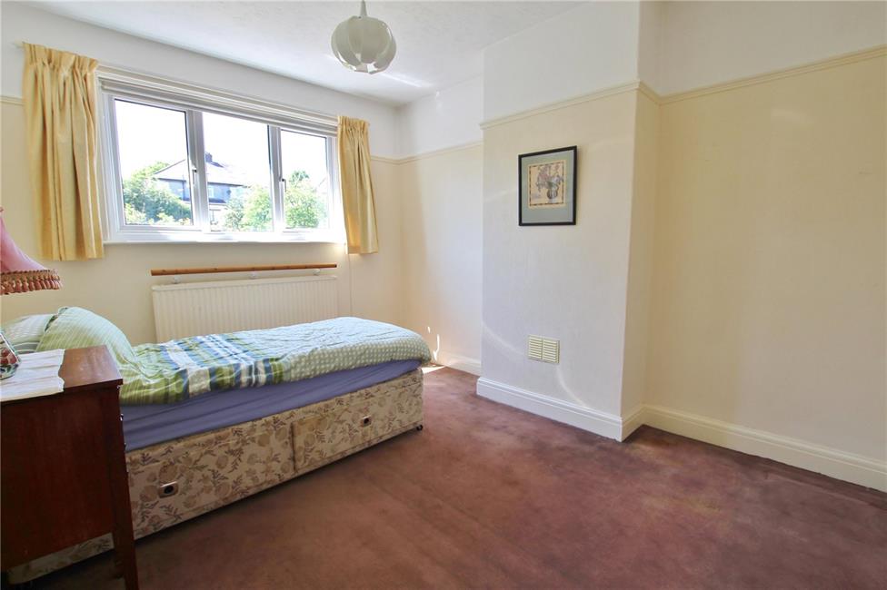 A genuine third double bedroom overlooking the large rear garden, radiator, period picture rail, skirting boards and TV aerial point.